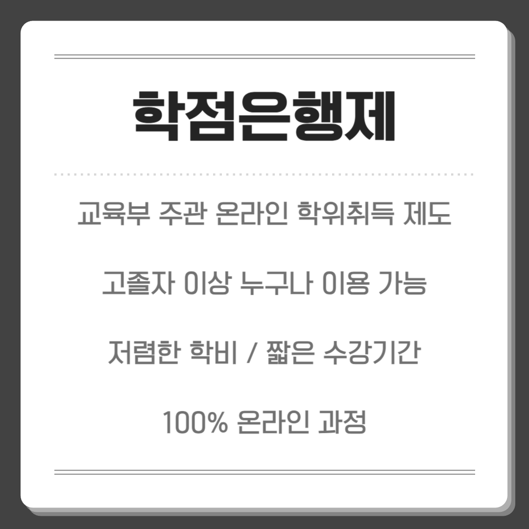 학점은행제는 전적대 학점 활용이 가능하기 때문에, 대학 중퇴자나 전문대 졸업자분들이