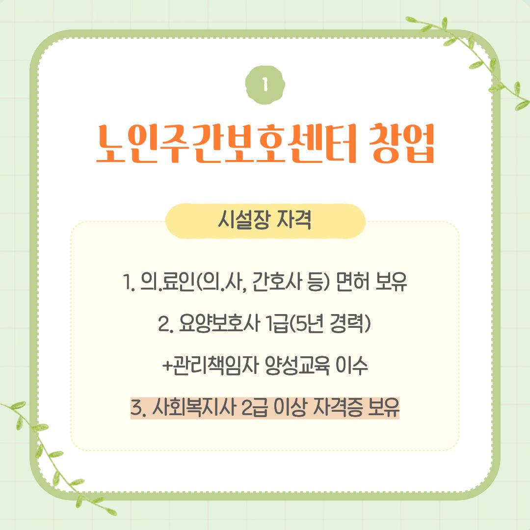 노인주간보호센터 창업 조건