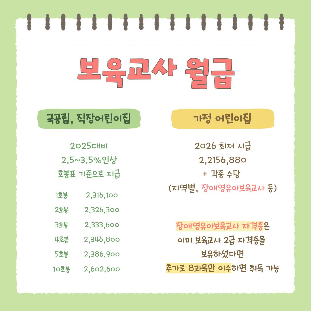 어린이집 보육교사 2026 월급 정보