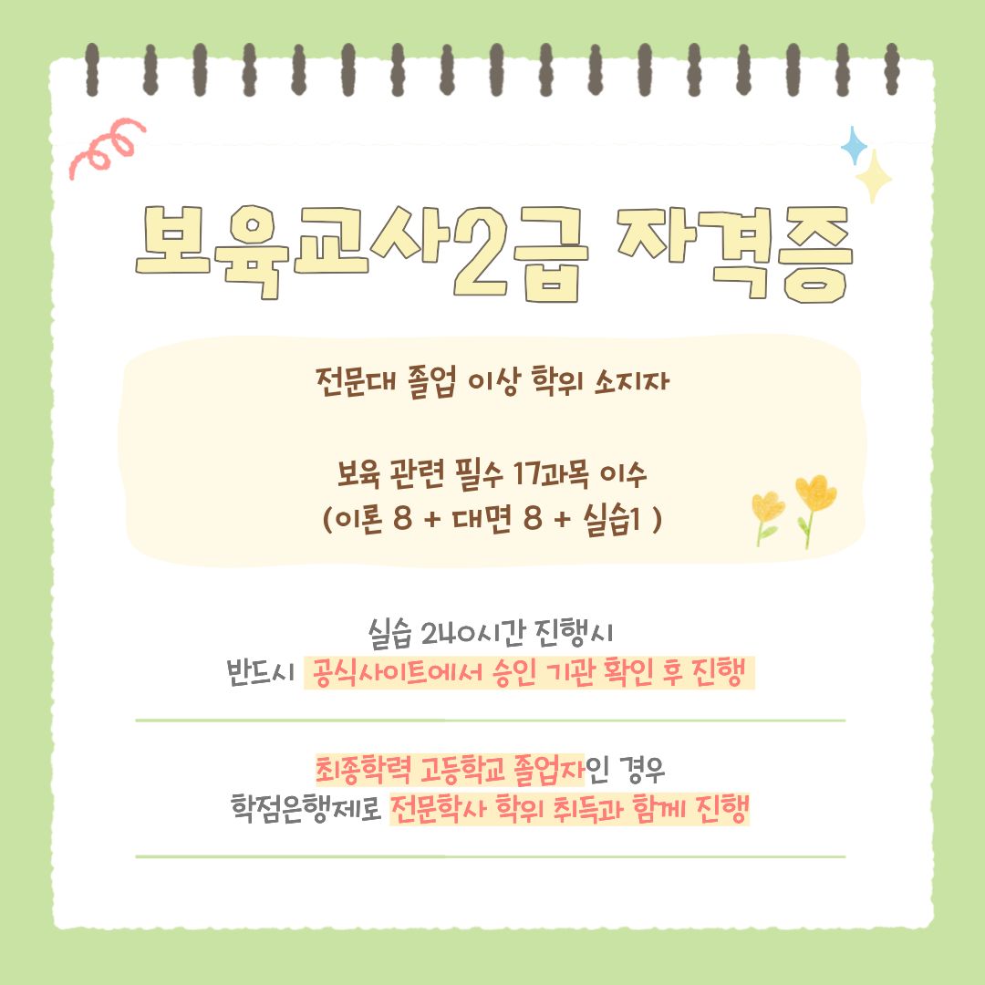보육교사2급 자격증 취득은