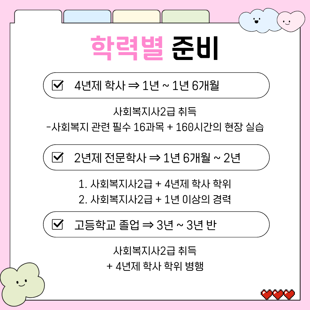 두 번째, 사회복지사2급 + 실무경력 1년