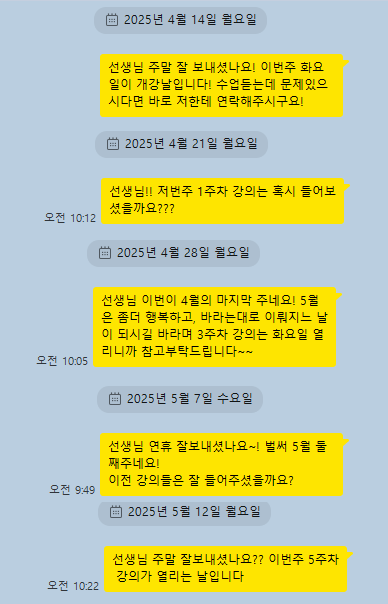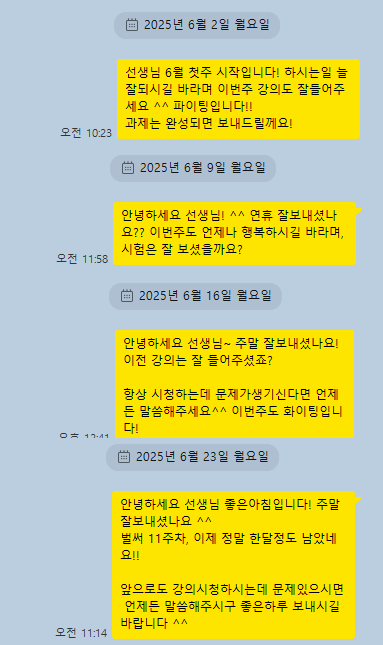 매 주 꼼꼼히 학사일정 연락 드리며 출석 체크